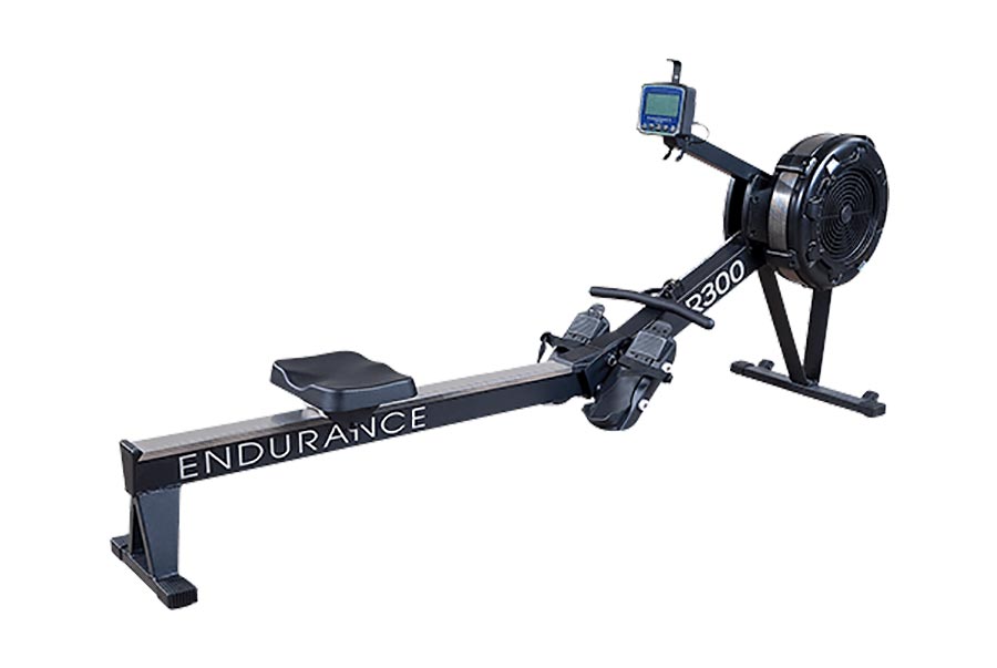 The Endurance by Body-Solid R300 Indoor Rower delivers an effective low-impact cardio and total body workout. Not only does the rowing movement provide users with high-intensity calorie-burning cardio but works the quadriceps, hamstrings, abdominals, obliques, lats, biceps, triceps, hip flexors, and more. User-controlled air resistance puts users in full control for a balanced and coordinated workout. The R300 is a self-generating machine eliminates power requirements for peak energy efficiency in home or commercial settings. A precision-engineered flywheel design minimizes noise. Nickel-plated chain offers unmatched durability in even the most intense environments.