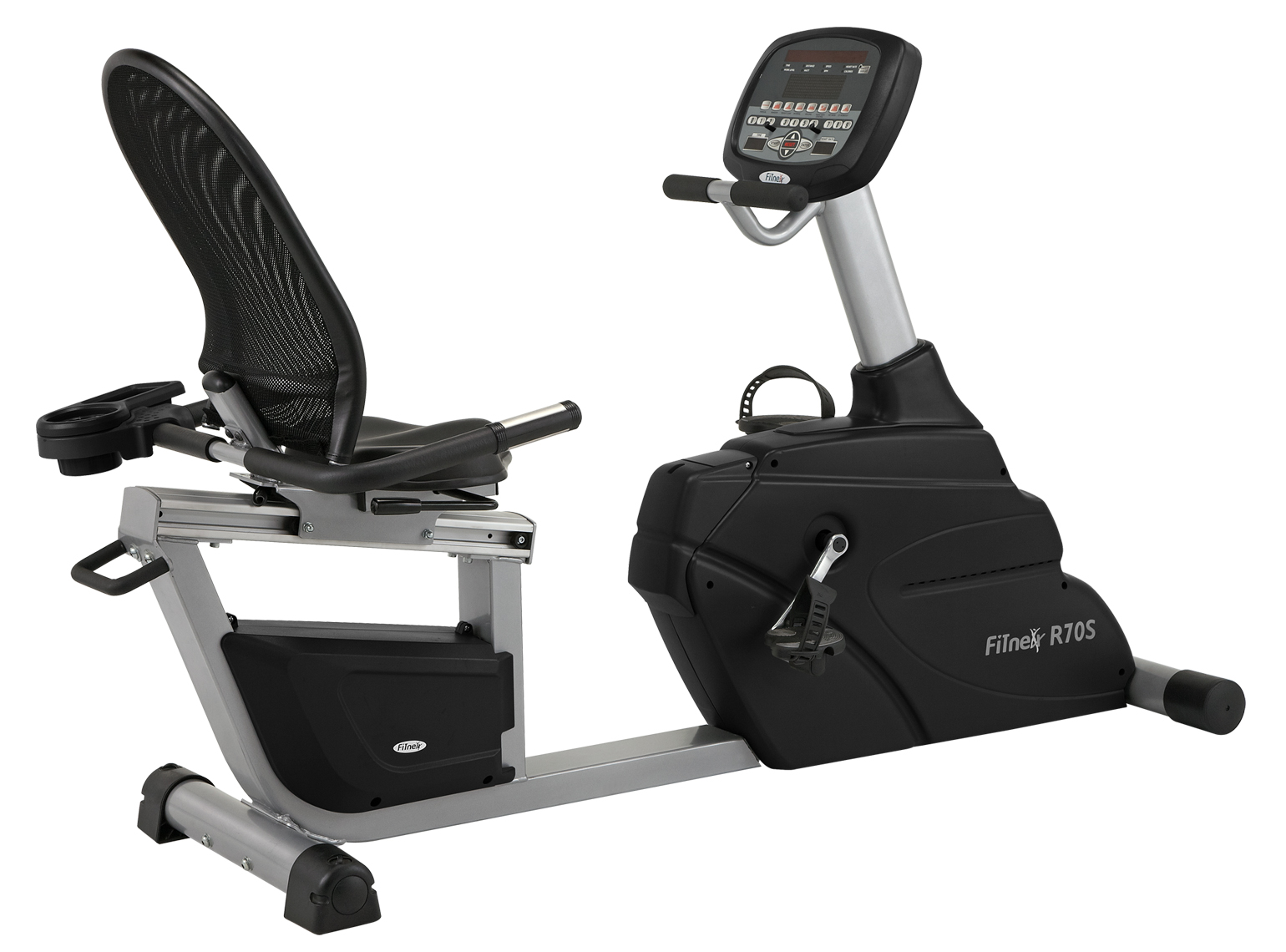 Get fit with the affordable, commercial grade Fitnex R70 recumbent exercise bike, perfect for improving your cardiovascular health, strengthening your legs, and training for cyclers during inclement weather. This stationary recumbent bike features 16 levels of friction-free magnetic resistance for a smooth, quiet workout. 8 Programs, Max User Weight: 400 lbs, Weight: 170 lbs, Dimensions: 64″ x 21″ x 51″.