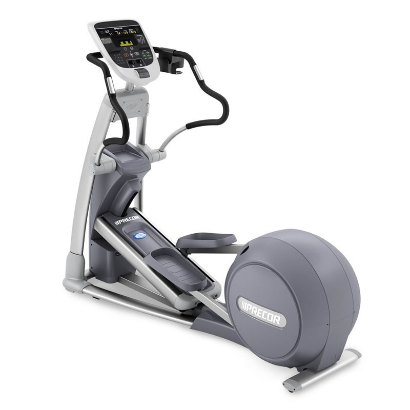 The Precor EFX 546i Experience Series Elliptical comes pre-programmed with 11 challenging workouts. Some of these pre-set workout regimens include: the Quick Start and Manual programs—for those who prefer to create their own workout; 2 modes that focus on the gluteal muscle group; Interval and Weight Loss Interval programs; a Fitness Test; and one program that focuses on basic heart rate control. The best part about these workouts is that users can switch between the various programs on the fly without having to stop and fumble for buttons. The Precor EFX 546i Experience Series Elliptical is completely self-powered, with a rear drive system and impressive Eddy current braking system that provides the various levels of resistance. Users can monitor all of their vital statistics on the large LED console. These include items such as time, distance, speed, calories and more. Heart rate monitoring comes via the intuitive sensors in the handles of the machine’s biomechanically designed handlebars.