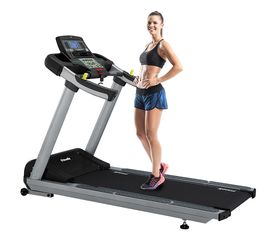 The Star Trac E TR Treadmill features a speed range of 0.5 miles per hour to 15 miles per hour; and an incline range of 0 percent to 15 percent. These speed and incline settings work in concert to offer a leg-toning, leg-strengthening cardio workout for people of all skill and ability levels. There are a dozen pre-programmed workouts from which exercise enthusiasts can choose. They include a Manual and a Quick Start mode; programs that measure for dynamic and constant heart rate, respectively; a Customized fitness test; and five theme-based workouts, including the CPAT Fire Fit Test, the Army PFT, Navy PRT, Air Force PRT and Marines PFT regimens.Heart rate statistics are continuously available on the Star Trac E TR Treadmill. This is thanks to the contact-based and (optional) Polar telemetry-style pulse monitoring. Other readouts to which users are privy throughout the workout session include speed, incline, elapsed time, distance, calories, course profile, altitude, pace, and other motivational data—all offered in real time as the user sweats away the pounds.